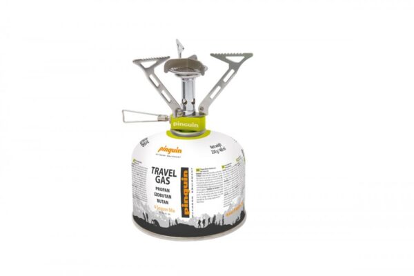Pinguin gorionik Hiker jačine 3000 w, dimenzija 46x46x105 mm težine 96 g, sklopiv  model koji se montira  na bocu,regulator plina na gorioniku.  Ima manju površinu na koju se stavlja posuda. Napravljen od nerdjajuceg celika i aluminijuma.Namenjen boravku u prirodi,kampovanju,planinarenju…